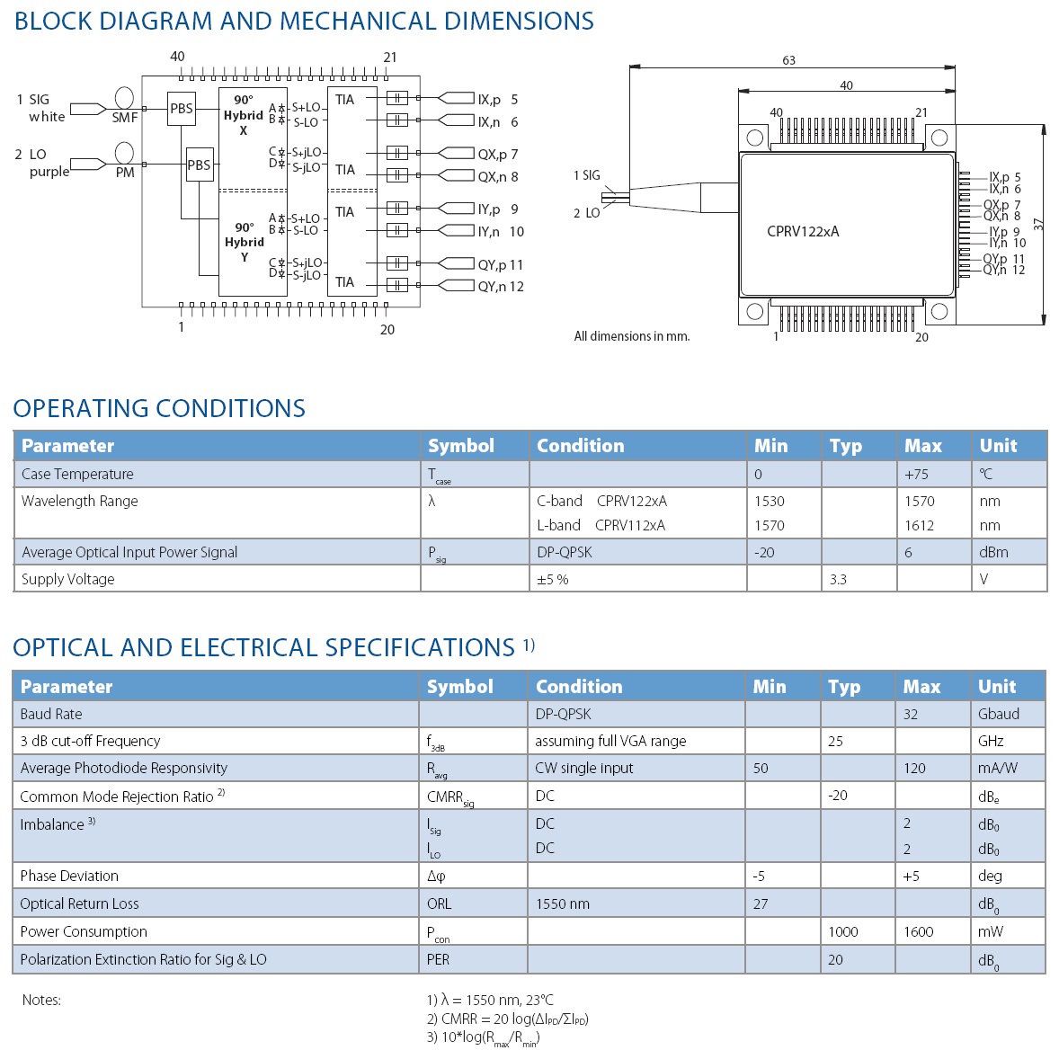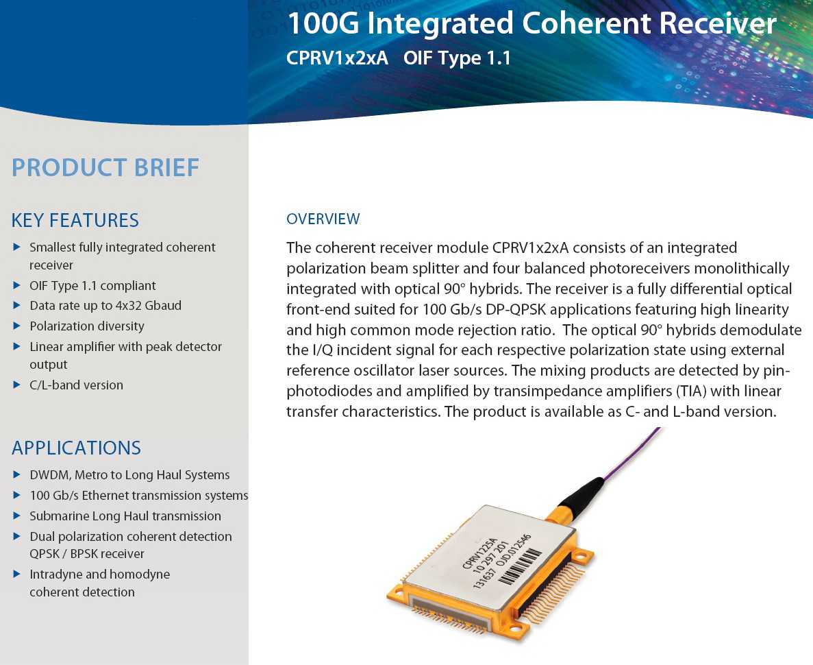 100G速率 Finisar 高速光电探测器CPRV1225A 光纤相干接收机