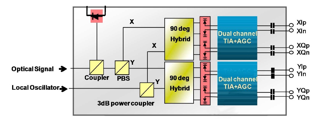 - Integrated Dual-Polarization 90 Degree Optical Hybrid.