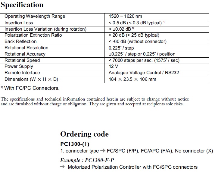 PC1300 is designed to manipulate the polarization states by either manual adjustment or remote control. Fiber optic quarter-wave plates are driven by motors.