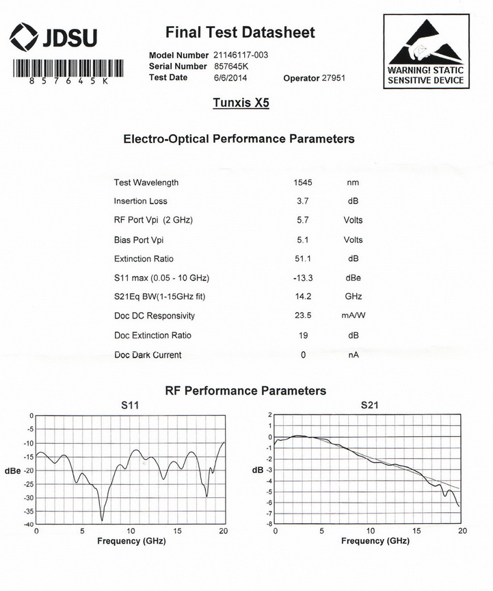 10Gbps LN Intensity Modulator, JDSU X5, 40dB Extra-High Extinction Ratio