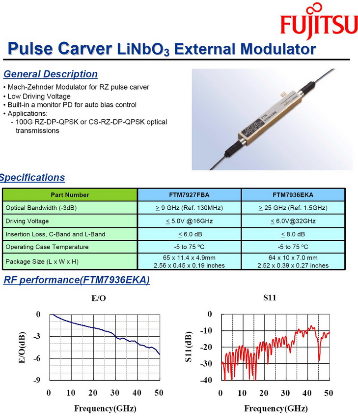 10Gbps Intensity Modulator, Fujitsu FTM7927FBA, Lithium Niobate Fiber Modulator