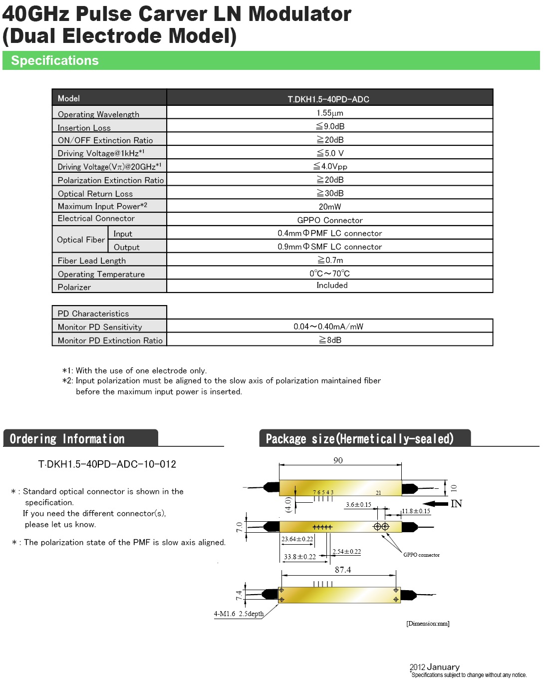 40Gbps Intensity Modulator, Sumitomo T.DKH1.5-40PD-ADC