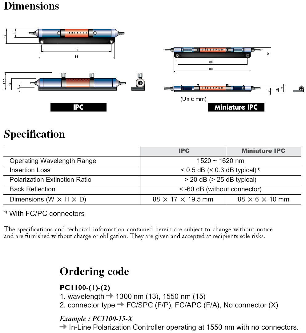 PC1100 非常适合光通信系统和光电实验上小尺寸的测试需要,并且它包含了传统的大体积偏振控制器的完整功能。PC1100是带连接头的控制器,能够和传统的通信光纤很好的连接,因而很容易地安装到系统中去。